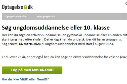 Nu er du inde på søgeside for Optagelse.dk.